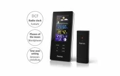 Fonctions: Humidité extérieure, Situation météorologique actuelle, Affichage, Qualité de l’air intérieur, Pression de l’air intérieur, Pression de l’air extérieur, Affichage de l’heure, Phases de la lune, Température intérieure, Température extérieure, Type: Station météo, Catégorie de produits: Station météorologique, Set: Oui