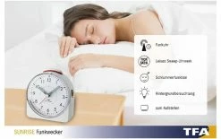 Type d’écran: analogique, Signal radio: Oui, Nombre de fuseaux horaires: 1 ×, Équipement: Rétroéclairage, Fonctions: Fonction snooze, Alarme, Source d’énergie: Piles